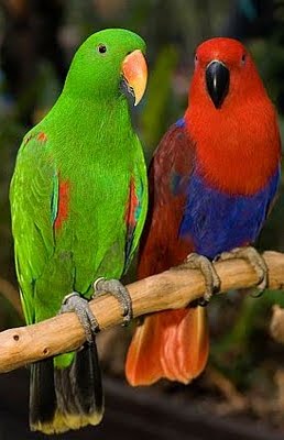 ..tento austrálsky papagáj, je svojim vzľadom príkladom úplnej odlišnosti sfarbenia samcov a samíc jedného druhu... V minulosti boli pohlavia eklektusa považované za dva samostatné druhy a takto aj dovážané zo svojej pôvodnej domoviny, v ktorej sa vyskytuje viac foriem eklektov - podľa územia. Sú to vtáky menej zarastených saván, nížin a lesov. Obýva Novú Guineu, severnú Austráliu, severný Queensland, ostrovy Moluky, Aru, Šalamúnove ostrovy a menšie ostrovy. Je vhodný pre skúseného chovateľa na chov v páre, alebo aj jednotlivo. K páru nie je vhodné umiestňovať iné vtáky. Eklektus je inteligentný papagáj, viac samotársky než spoločenský, viac lozivý než lietavý. Je preň vhodná vonkajšia, či bytová voliéra, s konármi z tvrdého dreva, pretože mäkkšie dreviny svojím mohutným zobákom ľahko zničí. Hlučnosť eklektusov je popisovaná veľmi rôzne, kde u jedného chovateľa sú málo hlučné, inde naopak môžu eklekti dosahovať hlučnosť veľkých druhov ár. Pre tieto papagáje je zvlhčovanie peria dennou nevyhnutnosťou. Šklbanie peria, alebo jeho uštikávanie, býva dôsledkom nesprávnej pozornosti k periu eklekta, ako aj celkovo nesprávny postoj k jeho psychickému a fyzickému zdraviu. Je možné zvažovať aj možnú dedičnosť k týmto sklonom.